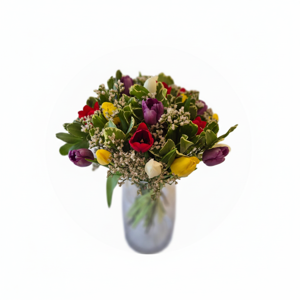 זר עם טוליפים צבעוניים ומעט ירק